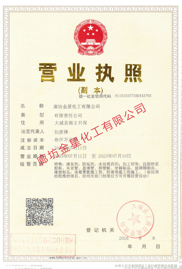 廊坊金星化工有限公司創(chuàng)建于2003年,是同業(yè)中發(fā)展較早,規(guī)模較大的集科研、生產(chǎn)、銷售、施工為一體的專業(yè)化企業(yè)。